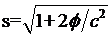 ; note the minus sign, following the astronomical convention wherein potentials are negative) at a distance r from a source mass M, then s is a “curved” space-time path length along a geodesic path (a free-fall path through a gravitational field), and our preceding formula generalizes to what is called the “Schwarzschild metric”: