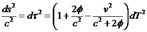 ; note the minus sign, following the astronomical convention wherein potentials are negative) at a distance r from a source mass M, then s is a “curved” space-time path length along a geodesic path (a free-fall path through a gravitational field), and our preceding formula generalizes to what is called the “Schwarzschild metric”: